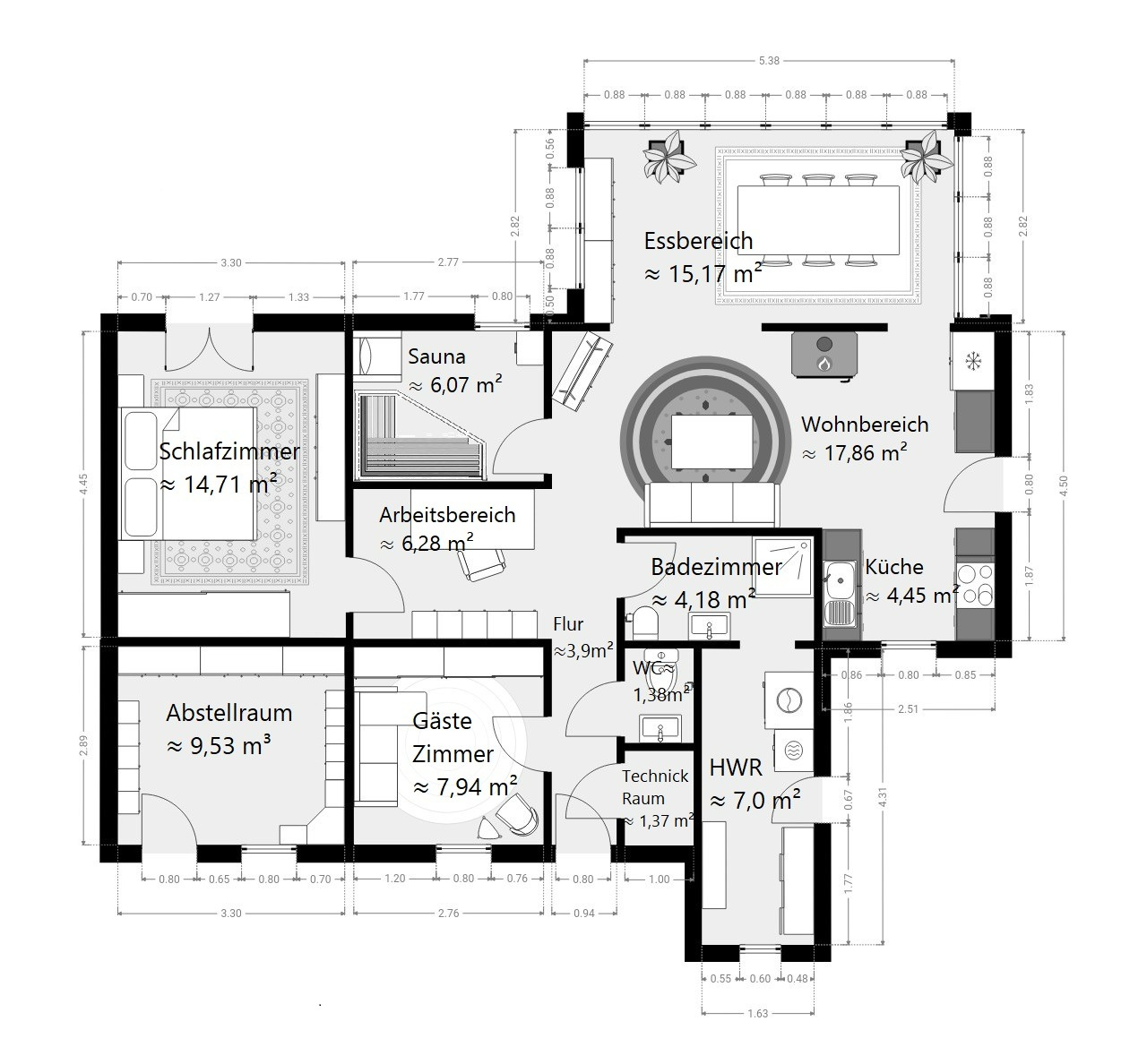 Möglichkeiten, die Aufteilung ist durchdacht,