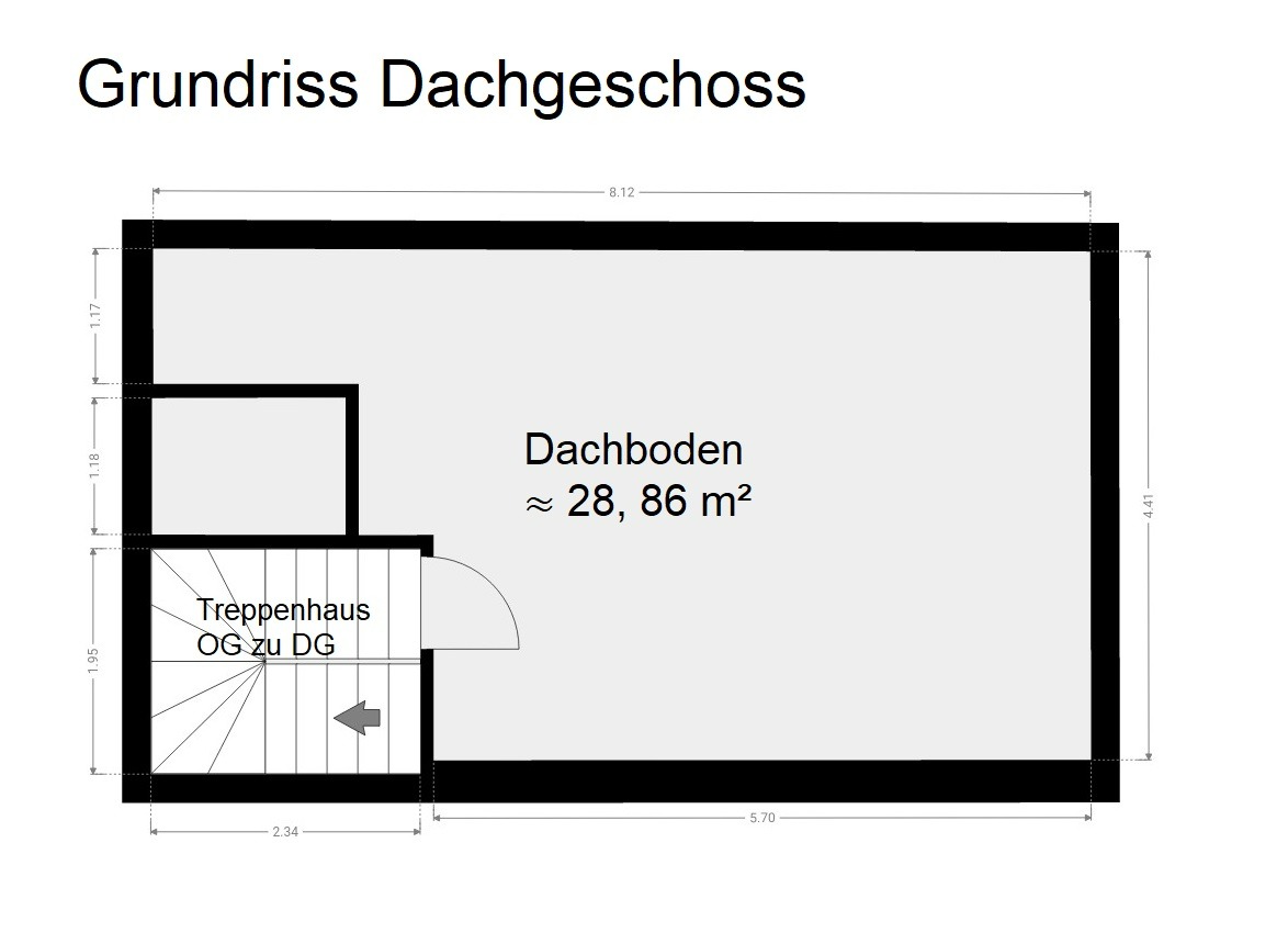 Dachboden: ca. 28,86 m² (mit Schrägen)