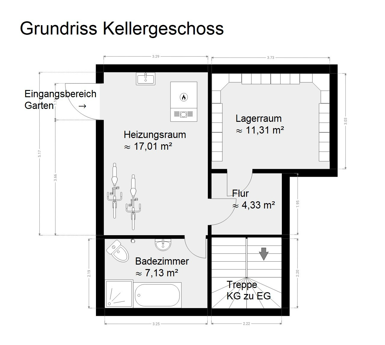 Kellergeschoss: Badezimmer, Lagerfläche, Heizungsraum