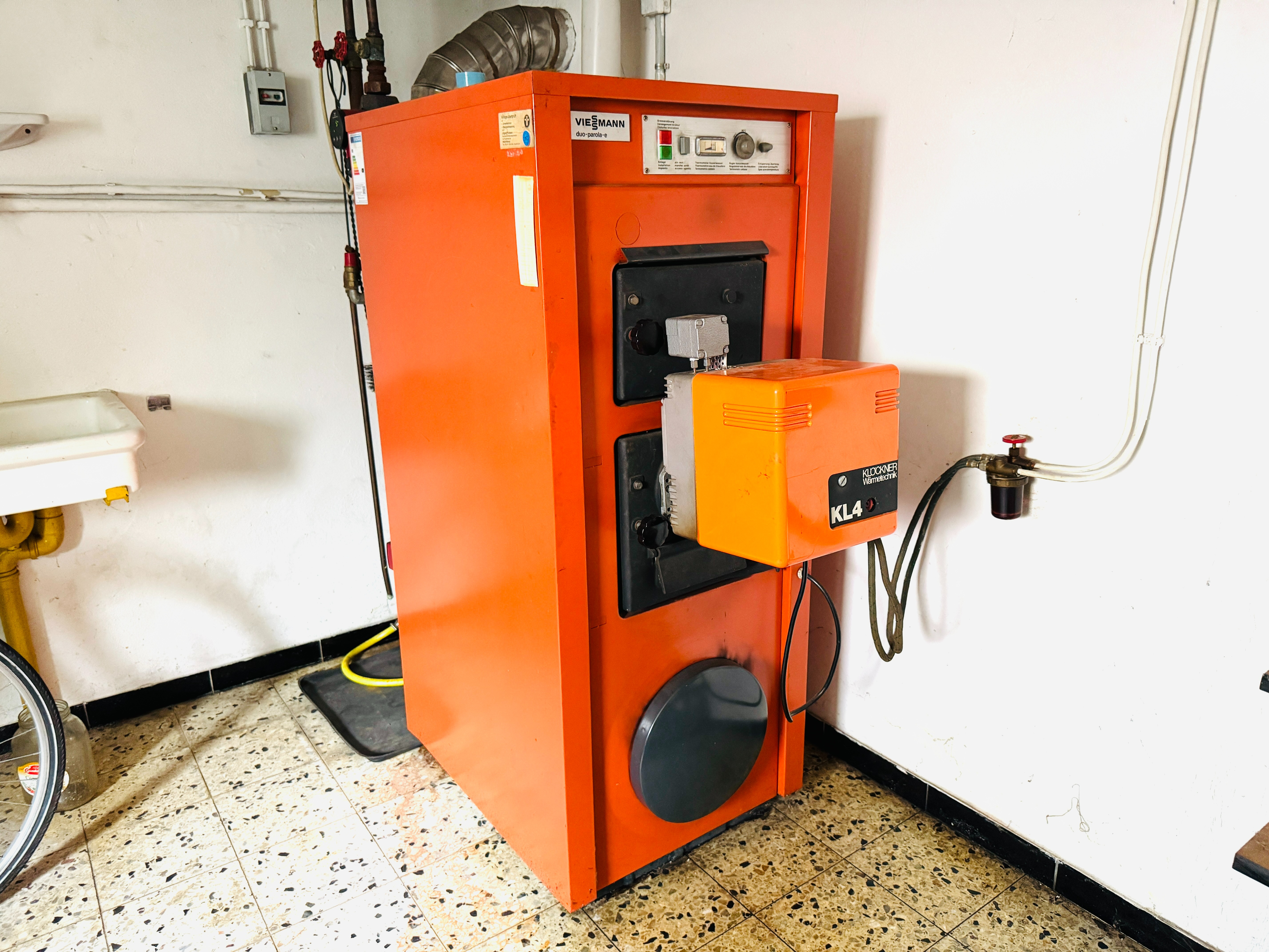Gebäude. Dort befindet sich die Heizungsanlage,