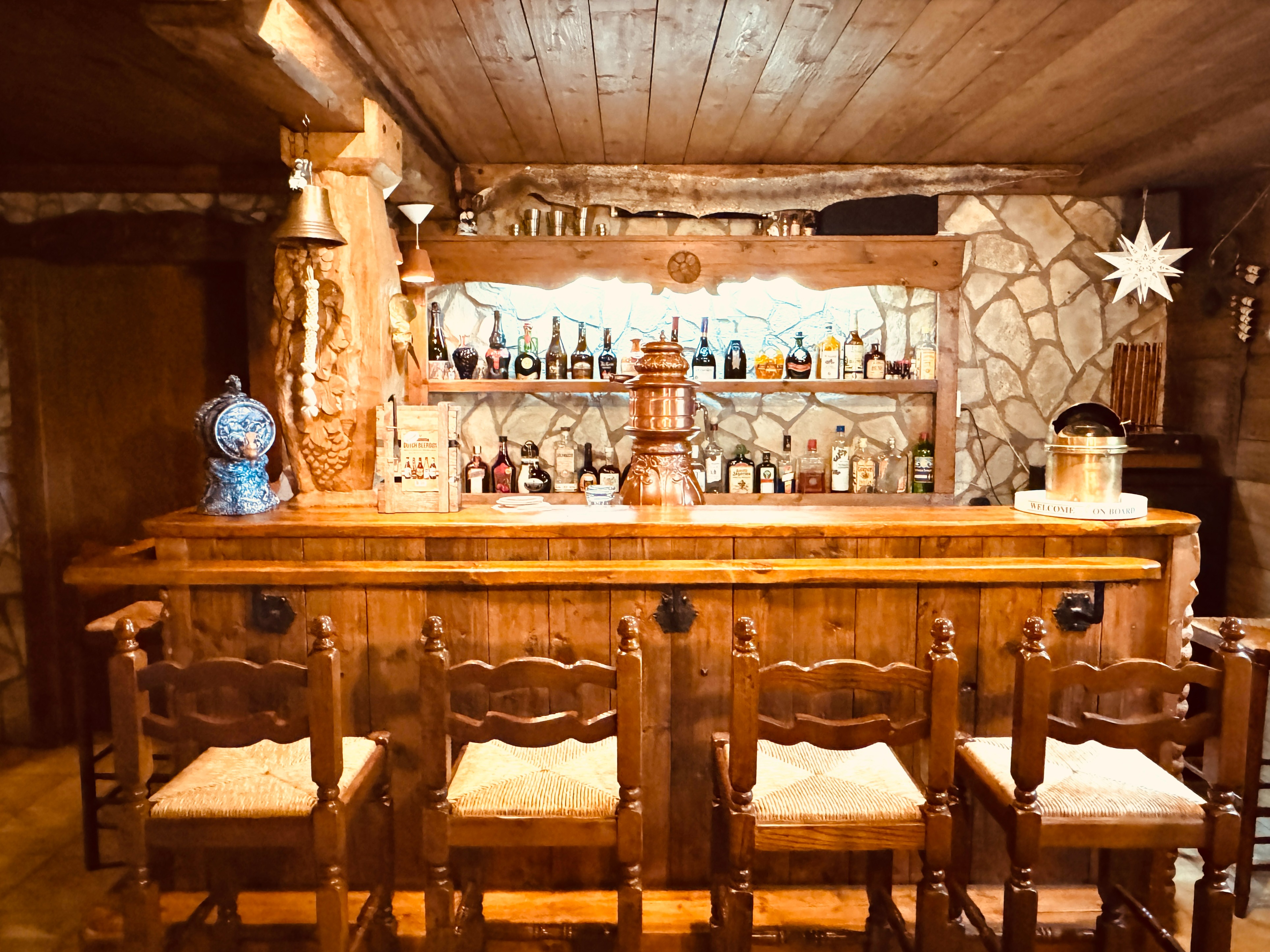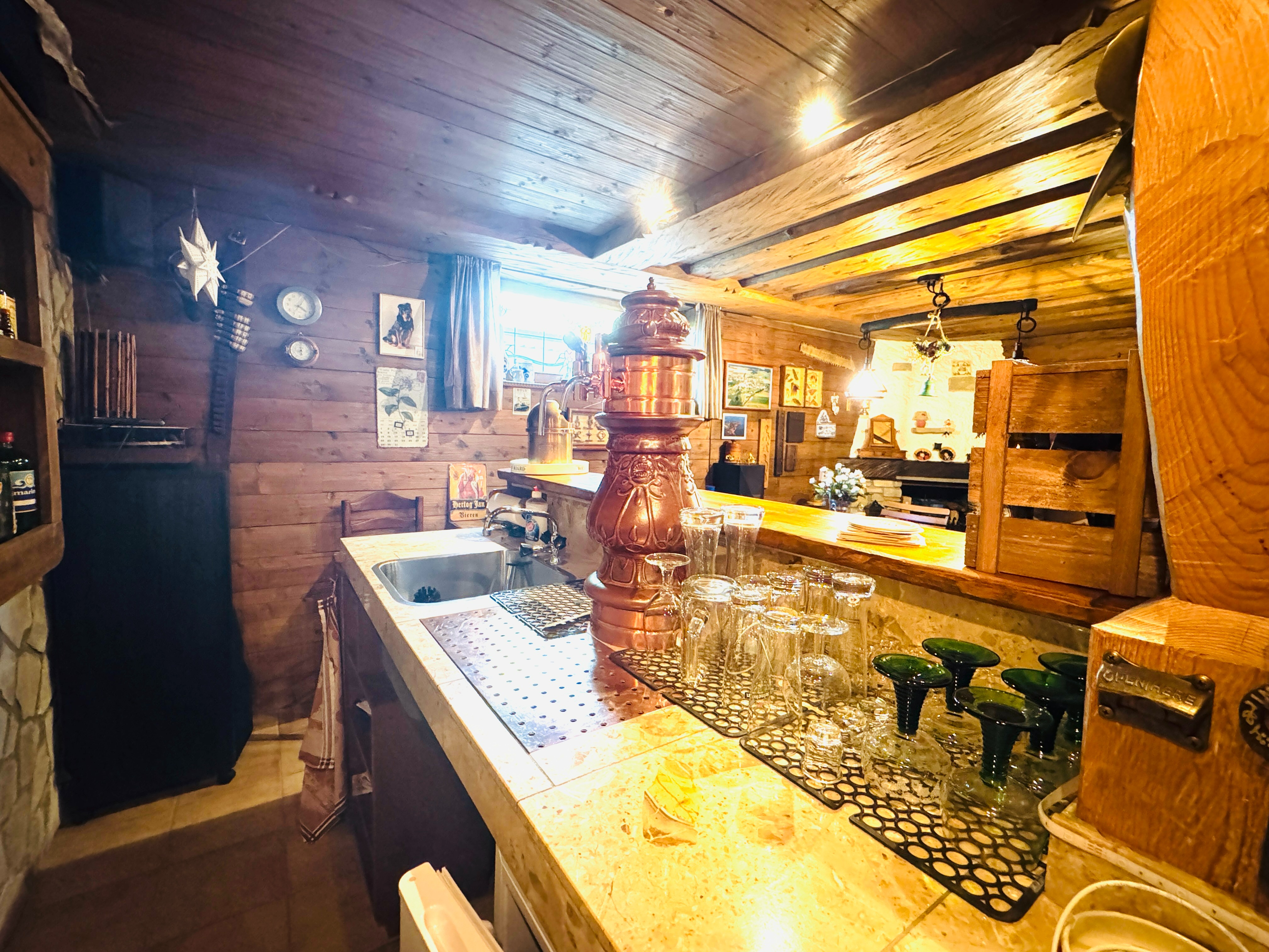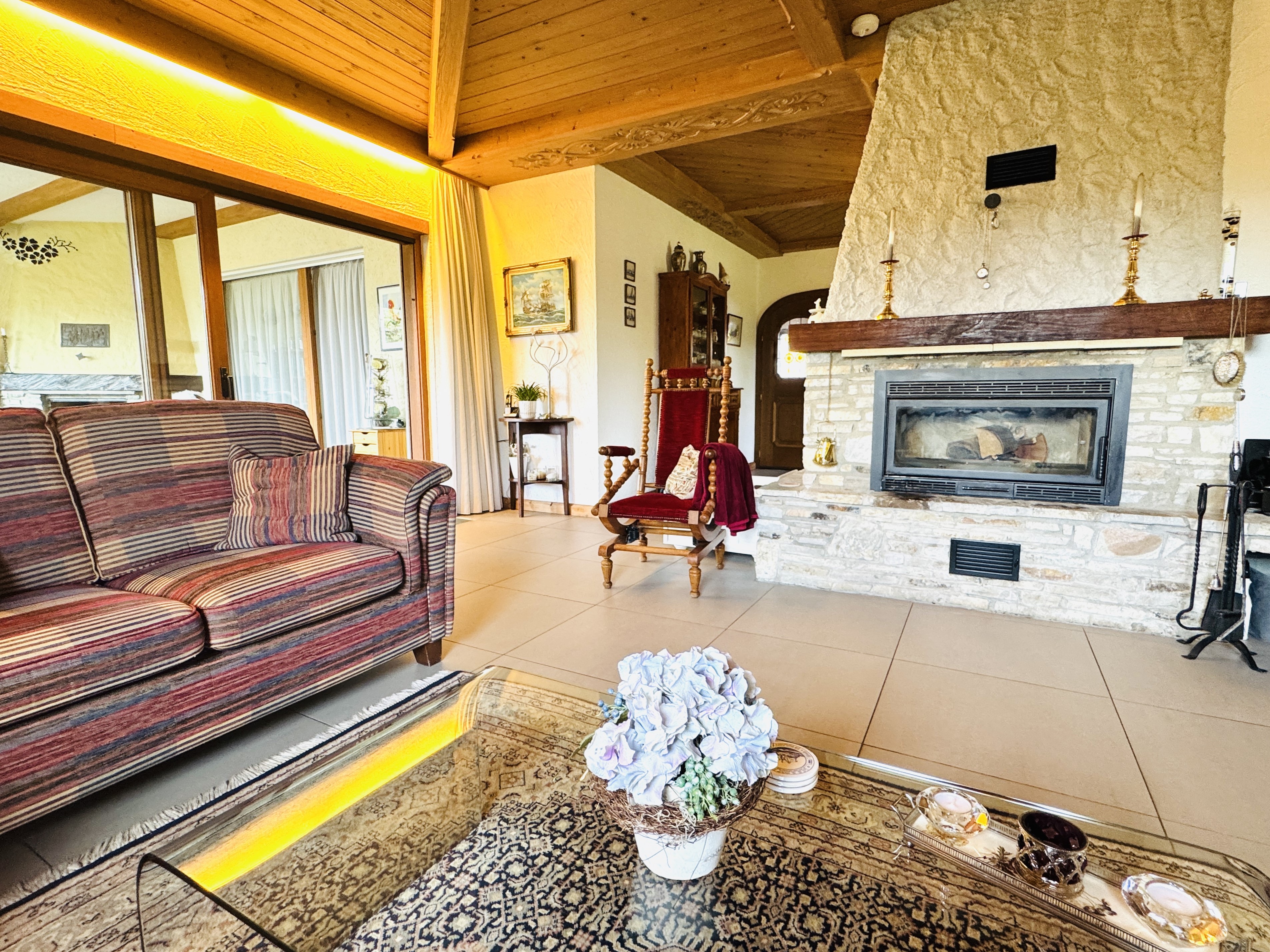 dunklen Tagen hier wohlzufühlen, denn der offene Kamin,