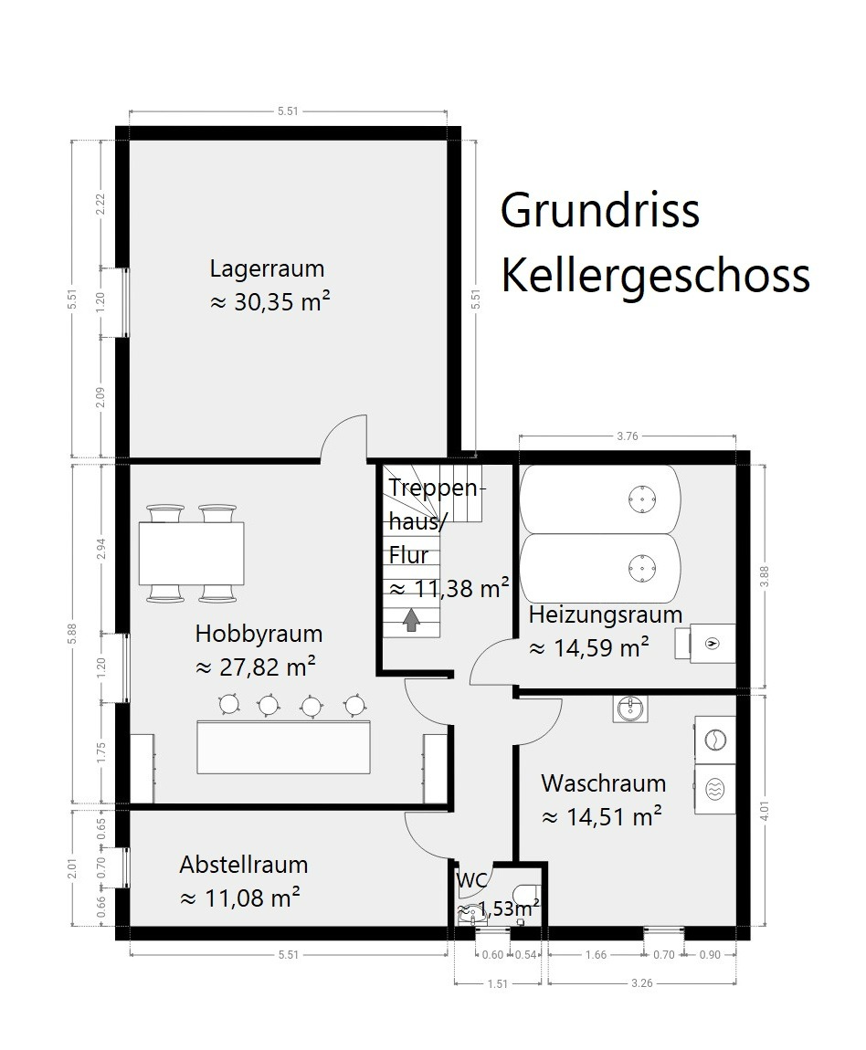 Kellergeschoss: Waschküche, Abstellraum, Gäste WC